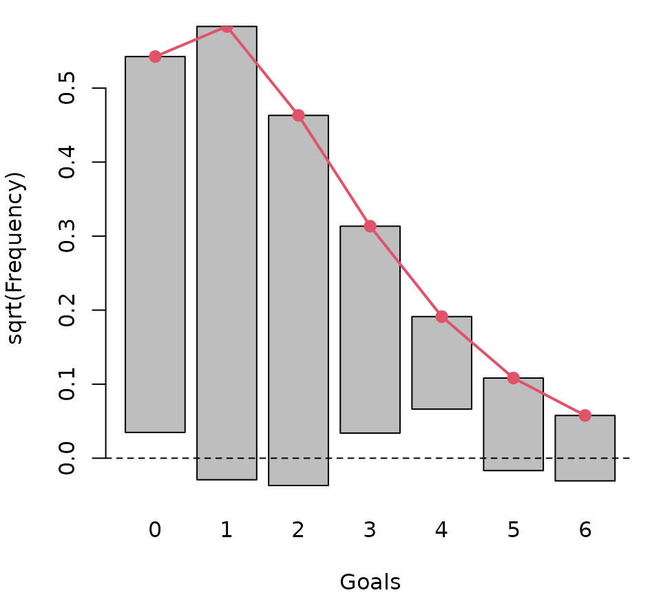 xlab = "Goals", ylab = "sqrt(Frequency)")