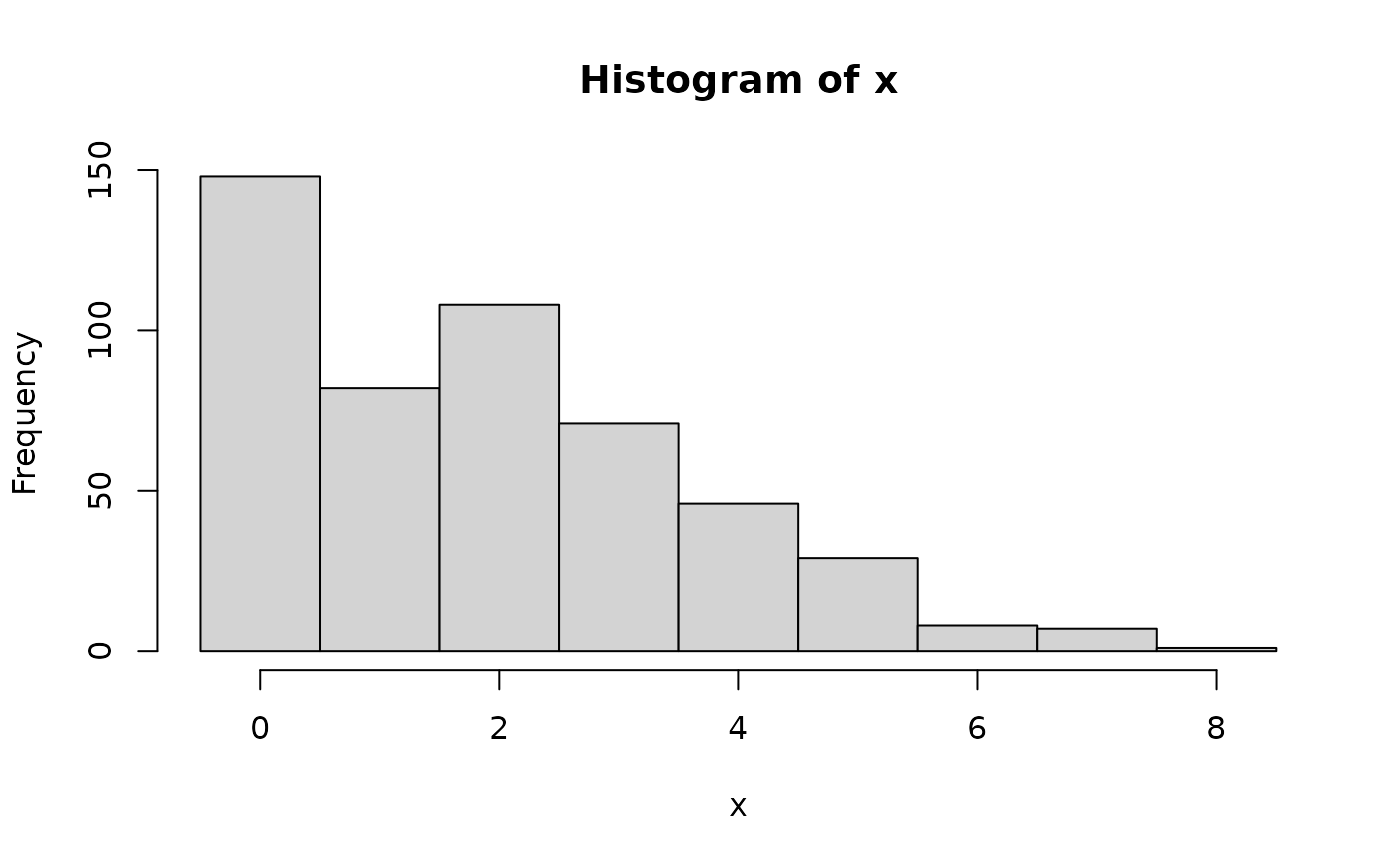 plot(0:8, pdf(X, 0:8), type = "h", lwd = 2)