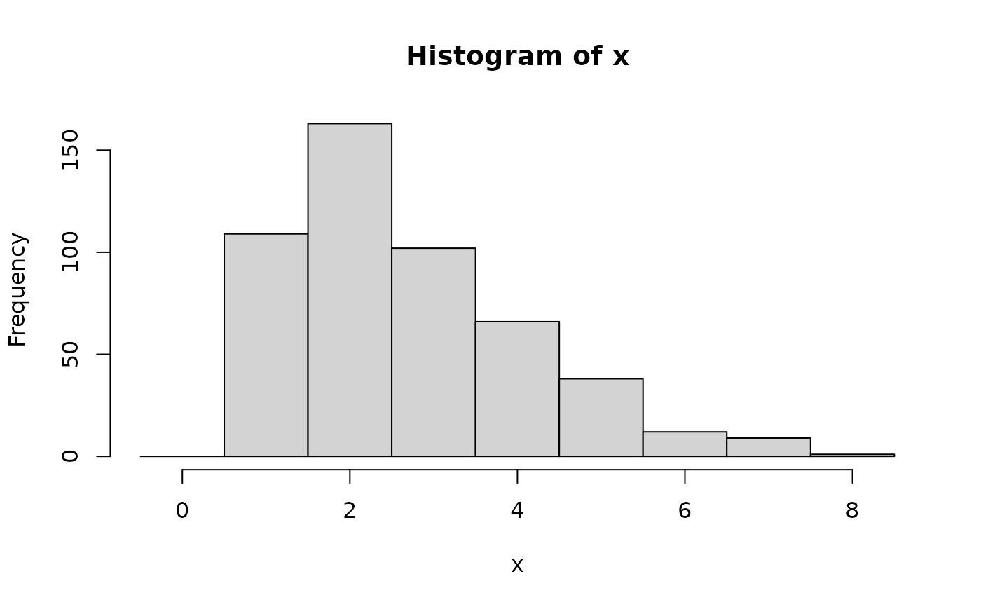 hist(x, breaks = -1:max(x) + 0.5)