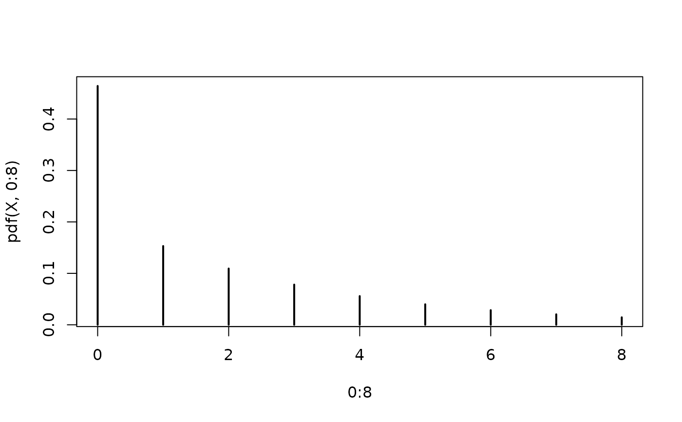 plot(0:8, pdf(X, 0:8), type = "h", lwd = 2)